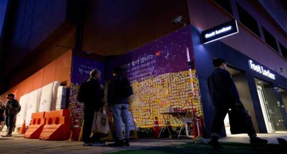 万圣节狂欢一年后,韩国夜生活区哀悼死者