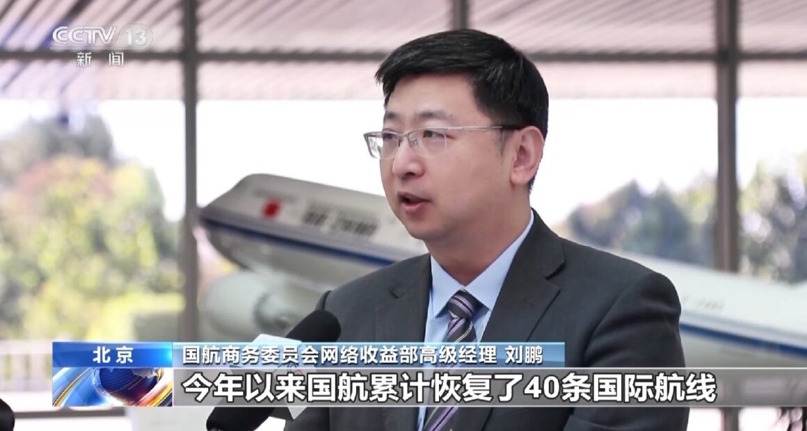 中国国航商务委员会网络收益部高级经理刘鹏说:“今年以来,国航累计恢复了40条国际航线。我们将持续稳步地推进国际航线恢复,重点是从航线网络覆盖度和从航班频次上全方位地发力,针对出行旅客提供更多更优质的一些选择。”