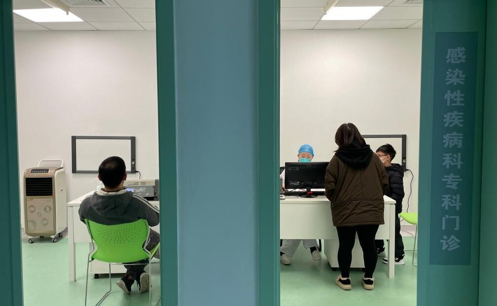 患者在武汉市金银潭医院感染性疾病专科门诊就诊。(图/新华网)