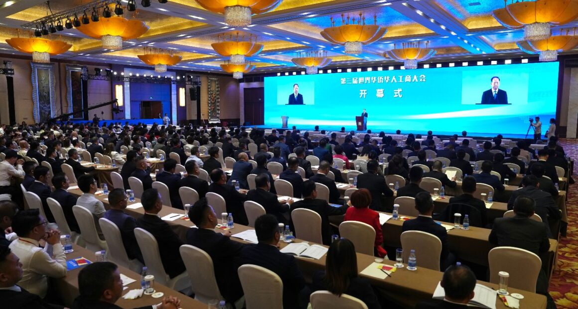 第三届世界华侨华人工商大会在北京开幕。中共中央政治局委员、中央统战部部长石泰峰出席开幕式并讲话。(图/中新社)