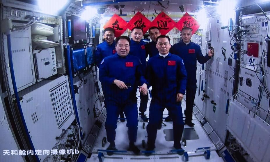 北京时间26日晚,神舟十六号航天员与神舟十七号航天员相聚太空,实现中国空间站第三次“太空会师”。