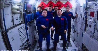 国际的 中国空间站第三次“太空会师” 新老乘组拍“全家福” 北京时间26日晚,神舟十六号航天员与神舟十七号航天员相聚太空,实现中国空间站第三次“太空会师”。 随着神舟十七号飞船稳稳停靠中国空间站,19时34分,神舟十六号乘组打开“家门”,一起等在“家门口”迎接队友的到来,航天员朱杨柱掏出手机记录这一珍贵瞬间。当神舟十七号乘组指令长汤洪波打开飞船轨道舱舱门,“神十六”乘组不约而同地鼓掌欢迎,6名航天员围在“家门口”热情相拥。 随后,6名航天员两两结对,老乘组细心地帮助新乘组适应太空失重环境,扶着他们一起“游”进天和核心舱,这里早已布置好由航天员景海鹏亲自书写的“欢迎队友”横幅。 神舟十七号乘组是中国空间站迎来的第六批“住户”,也是第二批航天员首次带领第三批新航天员进入太空,“年轻”是这一乘组的最大特点。人们还注意到,神舟十六号、十七号乘组在成员搭配上也有明显区别。前者首次包含“航天驾驶员、航天飞行工程师、载荷专家”3种航天员类型,后者全部是航天驾驶员。 乘组选拔有何特殊考量?中国载人航天工程副总设计师杨利伟表示,这是针对空间站任务需要选拔的。神舟十六号任务科学实验多一点,航天飞行工程师、载荷专家更适合执行任务。神舟十七号任务的舱外活动更复杂,就需要尽可能选拔航天驾驶员。 在天和核心舱“站”定后,6名航天员开启了“唠嗑”模式。朱杨柱说,能在中国空间站见到兄弟们非常高兴,“激动一天了”。汤洪波感慨,再次回到核心舱,有种回到“太空家乡”的感觉。 MumtazOctober 27, 2023