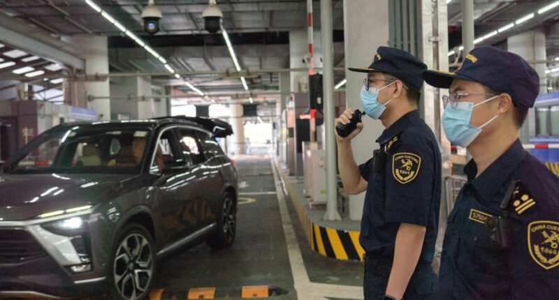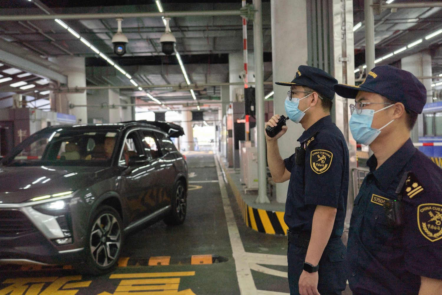 图为港珠澳大桥海关关员验放通关车辆。(图/中新社)