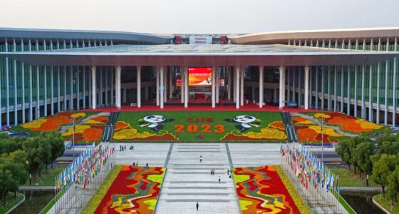 图为11月3日拍摄的国家会展中心(上海)南广场。(图/新华社) 第六届中国国际进口博览会11月5日在上海开幕,开幕以来,展会运行平稳顺利。 进博会已达成合作意向近600项 参展商提前锁定下届 中新社报道,7日举行的第六届中国国际进口博览会展中新闻通气会上,中国国际进口博览局副局长刘福学介绍,截至目前,第六届进博会已举办60场分专区板块的行业专场对接会,226家参展商、345家采购商参与对接,达成合作意向137项。中央企业交易团、卫生健康委交易团、相关地方交易团共在第六届进博会上举办85场集中签约活动,达成合作意向近600项。新品发布专区内已开展49场发布活动,42家参展商展示全球首发、亚洲首秀、中国首展的新产品、新技术、新服务。 新华社报道,国家展“美美与共”,72个参展方精彩亮相第六届进博会国家展,展台设计各具特点,融合传统文化、民族风情与现代科技,生动展示各国优势产业和投资环境。 第七届进博会筹备工作已全面展开,各国企业报名积极踊跃。在6日晚间举行的2023年进博会参展商联盟大会上,60余家企业及机构现场集体签约第七届进博会,签约的展览面积超4万平方米。 在进博会现场,巴基斯坦展商李明操着一口流利的中文说道:“今年的进博会人气太旺了,比前年要旺得多,客商们很喜欢我们带来的产品。” 上海东方网报道,这次进博会上,李明和他哥哥哈比带来了在巴基斯坦有着900多年制作历史的骆驼皮灯。骆驼皮灯需要制作匠人手工制作10天完成。和很多非遗项目一样,骆驼皮灯目前正面临着传承人青黄不接的窘境,目前仅有大约60人在从事制作,濒临失传。
