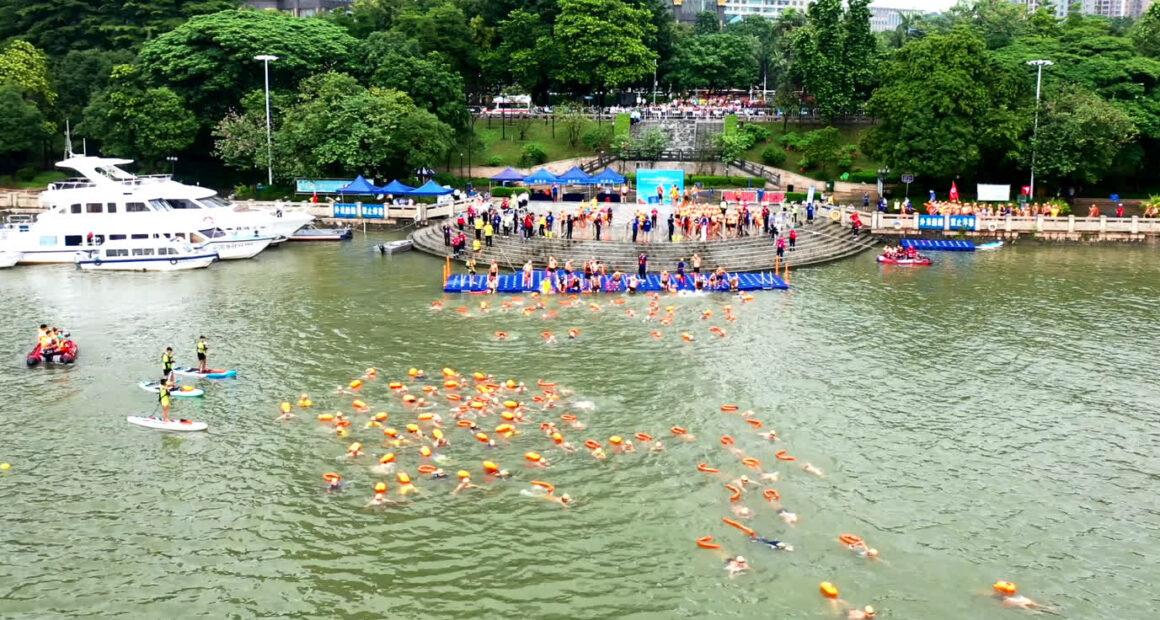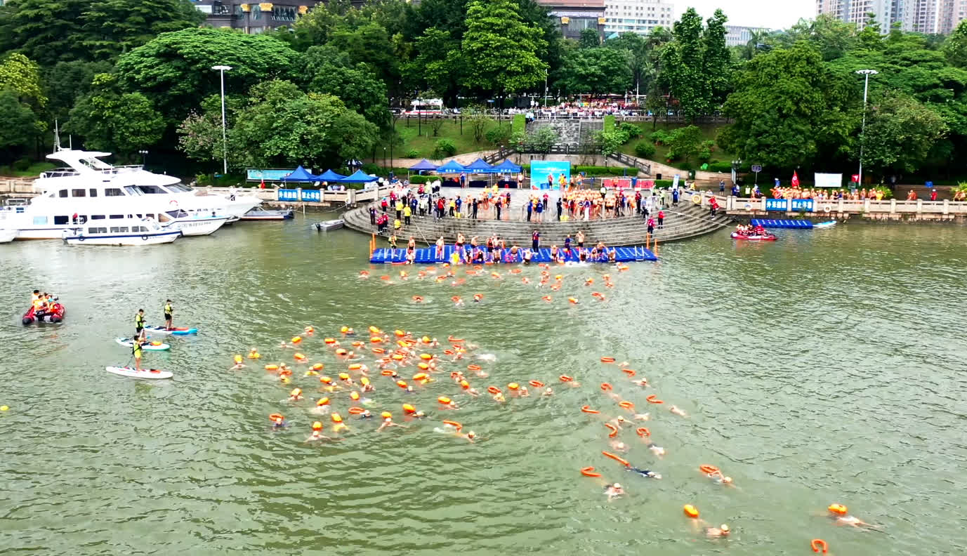 “港车北上”7月实施以来,粤北清远生态游受欢迎,图为横渡北江活动。(图/香港文汇网)