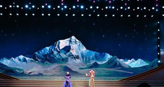图为二重唱《珠穆朗玛》。(图/中新网) 第三届中国西藏“环喜马拉雅”国际合作论坛文艺演出活动当地时间4日晚在林芝市鲁朗国际旅游小镇举行,此次论坛以“人与自然和谐共生共享发展合作成果”为主题。 当地时间4日晚,蒙古国、尼泊尔、智利、巴基斯坦、阿富汗、肯尼亚、缅甸、斯里兰卡、不丹、意大利等国政要,外国驻华使节,外国记者,专家学者,国家各相关部委领导以及西藏自治区各级领导,鲁朗小镇居民等观看了当晚演出。 演出包括歌舞、二重唱、二胡独奏等节目。其中尼泊尔博克拉市文艺演出团受邀演出了歌舞《欢迎您到博克拉》。文艺演出不仅展现了西藏不同地域民族歌舞,还演绎了援藏奉献精神,更传达了人与自然和谐共处的美好愿景。