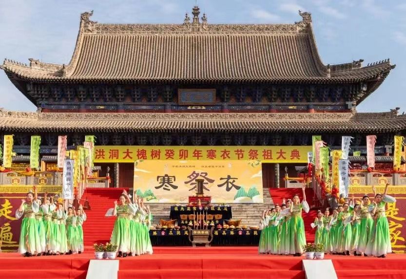 大槐树下,每年清明节、中元节、寒衣节三大传统祭祖节日时举办祭祖大典,已成为传统。尤其是在2008年“大槐树祭祖习俗”被列入第二批国家级非物质文化遗产名录后,举办祭祖大典的意义更加深远。“不仅为古槐后裔提供祭祖平台,追念祖先功德,并通过民祭盛况,吸引更多人承继孝德文明与先辈的精神力量,推动非遗传承保护。”洪洞大槐树景区相关负责人表示。