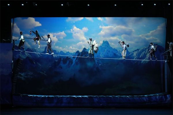 演出中不乏惊险刺激的瞬间。千佛洞“飞天”展现的吊环顶技,雪崩冲断桥梁后在崇山峻岭间重新架桥时的吊子飞人技巧,重新修建中巴公路时在高空钢丝上艰难通过的达瓦孜表演,还有《抖杠—雄鹰》节目现实与虚拟交织的高科技应用,都让观众屏住了呼吸,随即爆发出阵阵掌声。