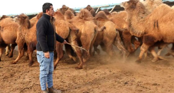 新疆维吾尔自治区哈密市伊吾县下马崖众合骆驼养殖专业合作社内,社长努尔艾力·喀斯木在养殖基地劳作。(图/中新社) “把骆驼托管在这,每年一头给我分红1000元钱(人民币,下同)。放在这里好,自己养需要照顾,生病了不好办,还容易被狼吃。”在新疆维吾尔自治区哈密市伊吾县下马崖众合骆驼养殖专业合作社,60岁的农户克热木·吾吉说。 克热木·吾吉住在合作社旁的新丝路社区,除了将自己的20头骆驼托管在此,他还在合作社上班,负责骆驼的检疫工作。在托管骆驼的收入之外,他能够额外获得工资,每月4000元。即使已经到了退休的年龄,但克热木·吾吉觉得自己身体好,希望能继续干。 合作社社长努尔艾力·喀斯木说,众合骆驼养殖专业合作社成立于2014年,目前主要业务为专业骆驼养殖与新鲜驼奶销售,合作社拥有3000平方米的养殖基地,现存栏900余峰骆驼,其中60%以上来自周边下马崖乡、伟子峡乡等地的农户托管。2015年起,合作社给下马崖乡村民的分红总额累计近40万元。 骆驼浑身是宝,驼绒能做衣服、驼皮可以制包,最珍贵的是驼奶,一桶驼奶粉的市价高达700元左右,至今仍是大多数骆驼养殖户最主要的收入来源。 众合骆驼养殖专业合作社是国家乳用骆驼养殖标准化示范基地。在合作社的挤奶间,一匹匹雄壮的双峰骆驼正排队“入场”。 “看着这么大,可是害怕人呢,人一多就不出奶。只有我俩在的时候才行,因为骆驼熟悉我们。”吾木提·托列吾汗和丈夫都在合作社工作,丈夫负责赶骆驼,她负责挤奶,夫妻俩一个月加起来能挣一万元钱。