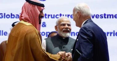 印度总理莫迪(Narendra Modi)近日在最近的广播演讲中表示,此前在新德里G20峰会宣布的“三方经济走廊”(IMEC),未来将成为数百年全球贸易的基石。 这是真的吗? 事实上,美国总统拜登(Joe Biden)和沙特王储穆罕默德·本·萨勒曼(Mohammed bin Salman)近日在宣布这个“印度-中东-欧洲经济走廊”(IMEC)计划时,是在将去年双方会面时尴尬的“碰拳礼”,提升为坚定的握手。而拜登此前曾扬言要让沙特阿拉伯成为贱民国家。 “三方经济走廊”项目旨在通过铁路和航运网络,加强欧亚之间的运输和通信联系。虽然项目称对该地区有益,但也实在反映了当下美国外交战略的特点。“简单地说,就是任何有助于美国利益,并抗衡中国的事情”,《外交政策》(Foreign Policy)期刊总编辑拉维·阿加尔瓦尔(Ravi Agarwal)告诉BBC。
