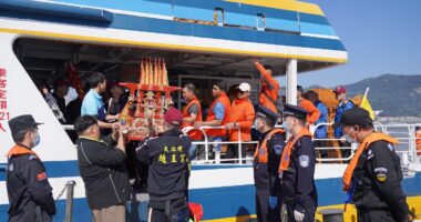 11月23日,151名台胞经福马“小三通”航线抵达福州马尾琅岐对台客运码头,前来福州参加第三届白马王文化节。(图/中新社) 当地时间23日11时许,中国台湾籍“南北之星”轮搭载174名旅客,经福(州)马(祖)“小三通”航线抵达福州马尾琅岐对台客运码头,其中包含151名受邀参加第三届白马王文化节的台湾信众。 白马王是福州地方道教神仙信仰体系中的典型神灵,也是海峡两岸民众广泛信仰和信仰最久的道教神灵之一。位于福州市晋安区鼓山镇鳝溪的白马王庙是白马王信俗的祖庙,也是现今福州唯一留存下来的汉代闽越国时期的古庙,是福建现存历史最悠久的庙宇之一。 “我们一家都信仰白马王,第二届白马王文化节我也参加了,时隔4年我们又来了。”一位林姓台胞说,他一直担心带大型出巡器具出入境会不方便,后来发现担心是多余的。“我们可以走专属通道,实现无缝对接,边检真的帮我们解决了实际困难,太贴心了。”