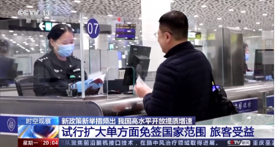 中国试行扩大单方面免签国家范围,旅客受益。(图/中国央视新闻客户端视频截图) 近日,中国一系列标志着进一步扩大开放的新政策新举措,引发了广泛关注,比如新版外国人永久居留身份证签发启用、中外往来航班大幅增加、首列老挝粮食专列通过中老铁路入境中国等等。海内外人员往来更加便利,货物流通更加顺畅,中国高水平开放正在提质增速。 免签政策、启用“五星卡”,入境更容易 从12月1日开始,中国试行扩大单方面免签国家范围,从原先的2个增加到8个。在原来文莱、新加坡的基础上,增加了法国、德国、意大利、荷兰、西班牙、马来西亚。连日来,中国多个机场口岸迎来首批免签旅客。 12月1日,在广东深圳机场,首批50余名符合免签政策的旅客顺利入境。12月2日,在广西南宁,首批54名享受免签政策的马来西亚旅客顺利办理好入境手续,开启赴华旅程。 马来西亚旅客说:“第一次来中国感觉特别不一样,因为这一次是免签证的,所以不用浪费时间去等这个签证办理的过程,我们大家得到这个消息的时候觉得很好,所以会有更多的马来西亚人到中国来旅行。” 12月1日,新版外国人永久居留身份证正式签发启用。因加入了体现国家标识的五星元素,新版永居证又被称为“五星卡”。 中国国家移民管理局外国人管理司司长毛旭介绍,新版外国人永久居留身份证,可以在社会公共服务领域、政务服务领域和互联网服务领域需要证明个人身份时单独使用,无须再出示其外国护照。比如,持证人可凭“五星卡”和有效护照多次出入境,无需另外办理签证或居留证件等手续;此外,在国内乘坐飞机、火车、轮船等交通工具,以及在国内旅店住宿,都可凭“五星卡”办理有关入住手续。 新加坡籍人士赵国全说:“我觉得是给予我们这些在华有点贡献、也非常想要继续居住在这里人的一个政策,所以我觉得这个政策是非常的好。”