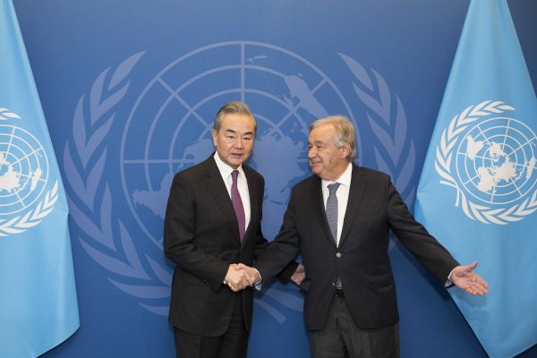 中共中央政治局委员、外交部长王毅在纽约联合国总部会见联合国秘书长古特雷斯。(图/中国外交部网站)