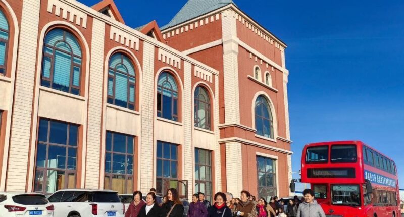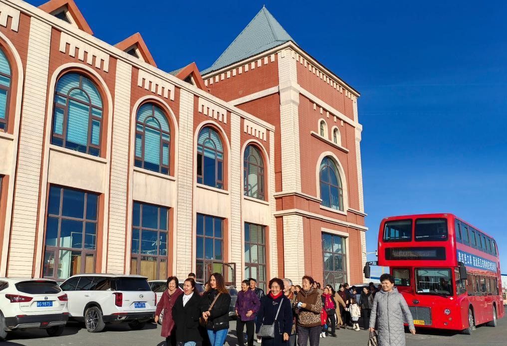 图为11月7日,游客乘坐大巴抵达巴克图口岸中哈边民互市丝路文化商品城。(图/新华社)