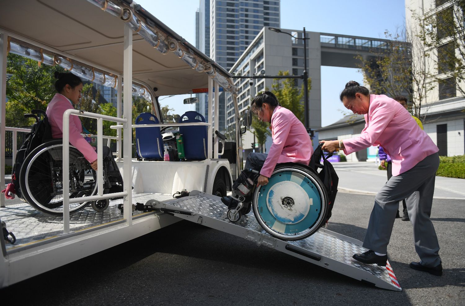 亚残运村是全体运动员和随队官员的赛时家园,也是杭州亚残运会最大的非竞赛场馆。图为10月16日,运动员在亚残运村使用无障碍接驳车。(图/中新社)