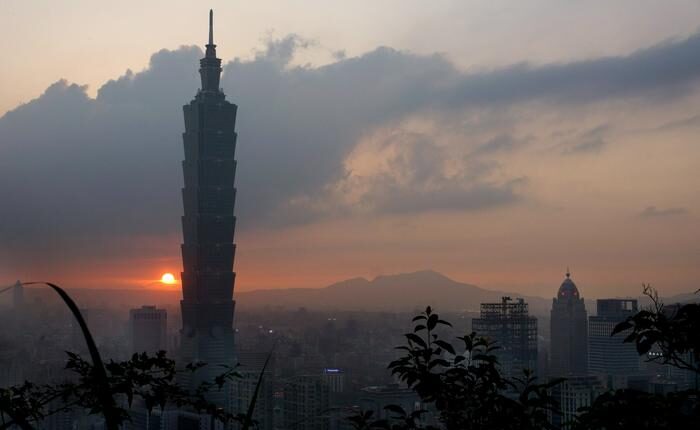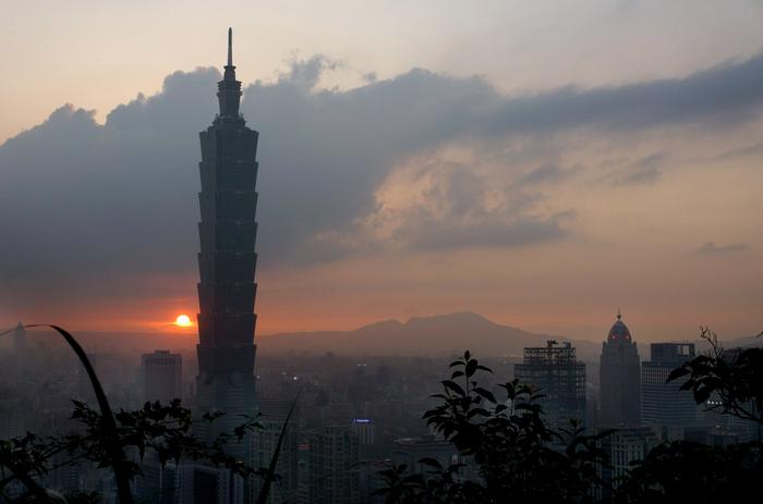 图为夕阳映照下的台北101大楼。(图/新华社)