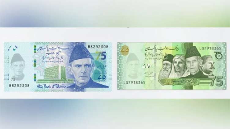 Up next PTI 负责人库雷希将于下一次听证会因密码案被起诉 Published on 17 October 2023 Author Abdullah Share article The post has been shared by 0 people. Facebook 0 Twitter 0 Pinterest 0 Mail 0 巴基斯坦国家银行(SBP)打消了人们对 75 卢比纪念币的疑虑,称蓝色和绿色均可用于交易。 SBP 在社交媒体平台 X(前身为 Twitter)上解释说,“75 卢比的蓝色和绿色纸币都是法定货币,可以用作巴基斯坦所有交易的交换媒介。” 人们可能还记得,央行在巴基斯坦独立75周年之际发行了绿色的75卢比纪念钞。 随后,该银行又发行了另一张蓝色 75 卢比的标书,以纪念其成立周年。 然而,这两种纸币的设计各不相同。 Leave a Reply Cancel replyYour email address will not be published. Required fields are marked *Comment * Name * Email * Website Save my name, email, and website in this browser for the next time I comment. View Comments (0)