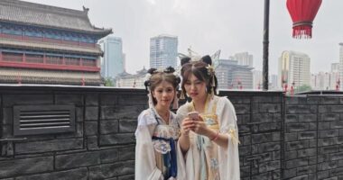 国际的 “双节”长假西安天气“开盲盒” 时雨时晴游客乐享“慢生活” 图为在西安城墙上身穿古装拍照的游客。(图/中新网) “这是我第一次来西安,却遇到了连绵阴雨,原以为这次旅行会留下遗憾,没想到雨中古城也很有感觉。”在已有600余年历史的城墙下,穿着唐朝仕女服饰,撑着油纸伞的重庆万州游客魏璇称,在雨中,西安这座北方古城,此时也有了些许江南的温柔。 魏璇说,今年中秋国庆“双节”长假期间,西安旅游市场火爆,她想去的陕西历史博物馆、秦始皇帝陵博物院等地一票难求。但这座“博物馆之城”的街巷角落皆自成一景,魏璇在老城区仍顺利开启了一场主题为“逛吃”的Citywalk(城市漫步)。 十月以来,西安进入时雨时晴的“开盲盒”模式,然而天气多变也难阻游客热情。在西安城墙景区,众多游客或穿着雨衣,或打着雨伞,携家带口的“登墙”计划仍未改变。 “出门前我特意查了天气,以为下雨后景区游客不会很多,没想到还是失算了。”海南游客杨涛笑称,换上古装在城墙上拍照,是来西安游玩必不可少的体验项目。然而他和朋友咨询了城内多家汉服店,仍未找到想要的“侠客服”,不得已只能扮起了“江南四大才子”。 西安城墙景区工作人员杨楚悦表示,为提升游客在假期的游览体验,景区全面实施单日限流、分时预约政策,每日限流5万人。同时,为应对降雨天气,景区还为游客提供了遮雨棚、雨具等便民设施和服务。 登上城墙,从永宁门向北看去,不远处的钟楼、鼓楼在烟雨中相互守望。来自各地的“老饕”汇聚于此,在大街小巷中寻觅心中美食。无论是牛羊肉泡馍、蜂蜜凉粽子、灌汤包等西安特色小吃,还是烤鱿鱼、奶茶、油泼辣子冰淇淋这类“网红”饮食,总能给远道而来的食客一份慰藉。 MumtazOctober 5, 2023