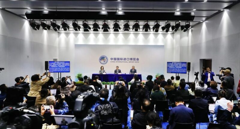 第六届中国国际进口博览会闭幕新闻通气会在国家会展中心(上海)举行。(图/新华社)