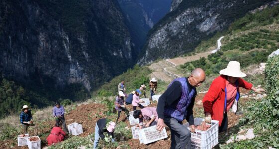 下庄村村民在一家公司承包的田地里收红薯,这些红薯将通过网上销售等渠道销往山外。(图/中新社) 地处秦巴山区腹地的下庄村也被称为“天坑村”,村庄似桶形,四周皆绝壁,从海拔高达千米的坑沿向下望,散落于坑底的农田仅巴掌大。层峦叠嶂的高山,将下庄人牢牢困在“井底”,人们靠一条羊肠小道与外界联系。 从1997年开始,在村支书毛相林带领下,下庄村全体村民发扬不甘落后、不畏艰险、不等不靠、不怕牺牲的“下庄精神”,以牺牲6条生命的代价,历时7年,在绝壁上修通一条8公里长“天路”。 经过15年探索,下庄村培育出“三色”经济——“蓝色-劳务输出、绿色-西瓜、橙色-柑橘”,发展乡村旅游,将绿水青山变成了金山银山,蹚出了一条致富路。 今年5月,下庄小环线全线建成,通村通畅、通组通畅率达100%。这条悬崖挂壁路不仅改善了下庄村出行条件,也成为村民的致富路。 目前,下庄村已建有下庄人事迹陈列室、巴渝传统村落数字博物馆—下庄馆、愚公讲堂、竹贤乡情馆、下庄村史馆、天路五景现场教学点等,吸引不少团队和个人前来参观、学习。 面对家乡的巨大变化,许多外出务工的年轻人不仅乐于回家过年,有的还留在了家乡创业。 今年31岁的袁孝鑫是重庆市巫山县竹贤乡下庄村人,大学毕业后,一直在重庆城区工作。 2022年,袁孝鑫回到家乡,创办了“下庄布谷”植物扎染工坊,她的扎染作品也吸引了不少游客前来购买。 袁孝鑫介绍,目前自己当选了下庄村村委会主任,未来自己也将教授村民扎染技艺,扩大扎染工艺品的生产规模,带动当地村民增收。 同时,村里不少居民把自家房屋改造成特色民宿,增加家庭收入。 如今的下庄村,美丽民居成为乡村旅游打卡地,千亩柑橘结着金黄的果子,村民人均年收入增加,在乡村振兴的道路上,下庄变成了“康庄”。
