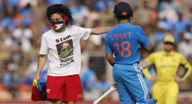周日早些时候,古吉拉特邦警方拘留了一名支持巴勒斯坦的澳大利亚观众,该观众在艾哈迈达巴德纳伦德拉·莫迪体育场举行的 2023 年国际板球世界杯印度与澳大利亚之间的决赛中违反安全规定并拥抱了维拉特·科利。