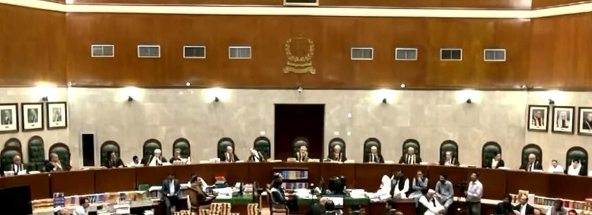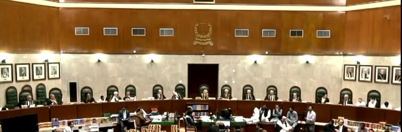 由巴基斯坦首席大法官卡齐·法兹·伊萨(Qazi Faez Isa)领导,全体法官包括萨达尔·塔里克·马苏德(Sardar Tariq Masood)法官、伊贾祖尔·阿赫桑(Ijazul Ahsan)法官、曼苏尔·阿里·沙阿(Mansoor Ali Shah)法官、穆尼布·阿赫塔尔(Munib Akhtar)法官、叶海亚·阿夫里迪(Yahya Afridi)法官、阿米努丁·汗(Aminuddin Khan)法官、马扎哈尔·阿里·阿克巴尔·纳克维(Mazahar Ali Akbar Naqvi)法官、贾迈勒·曼多哈伊尔(Jamal Mandokhail)法官、 穆罕默德·阿里·马扎尔法官、阿耶莎·马利克法官、阿塔尔·米纳拉法官、赛义德·哈桑·阿扎尔·里兹维法官、沙希德·瓦希德法官和穆萨拉特·希拉里法官。